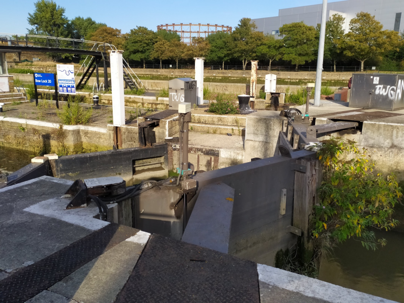 Lock into LEE NAVIGATION (canal) and horsebridge over the lock